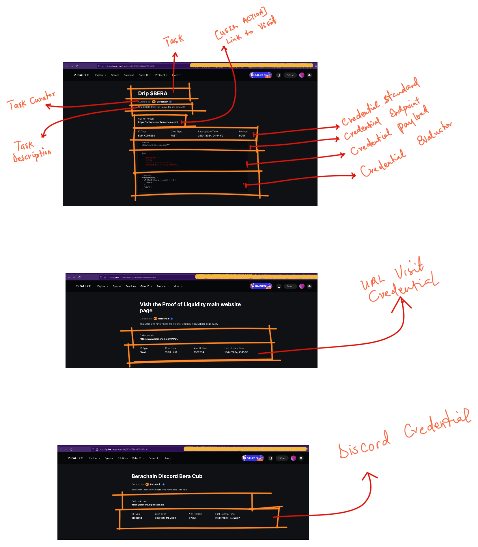 From the task presentation page you can tell how Galxe is quite close to the credential verification side of things, where every activity is actually designed to be a verifiable activity on-chain with a schema for verifying completion.