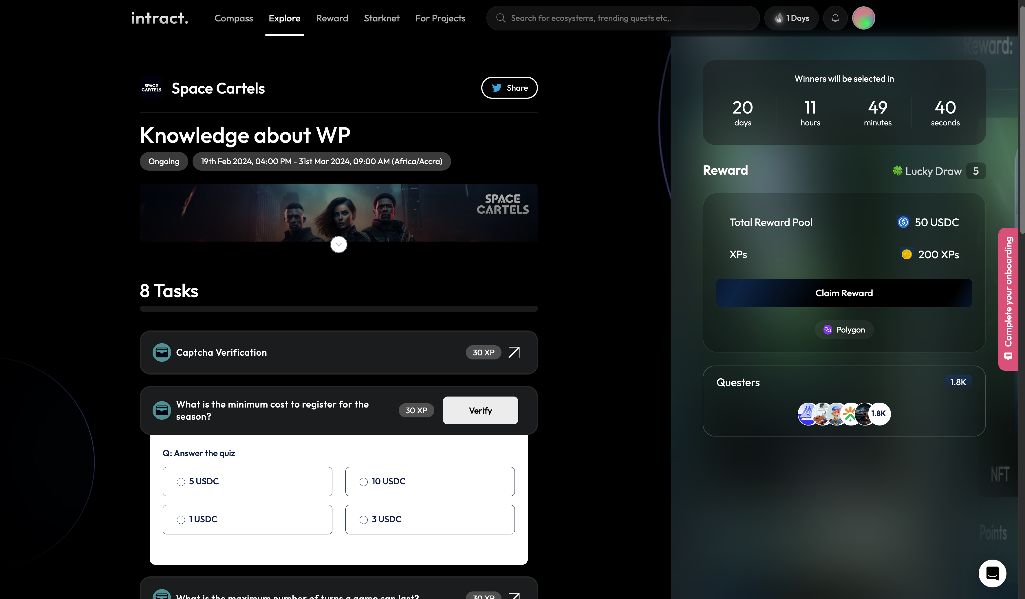 However every quest, bounty and on-boarding you complete is actually a verifiable token. Like a certificate. When I an lotanna were working on daccred they were one of the competitors to look out for. However my attention has been drawn to a new platform called intract that seems to be a competitor to the version of galaxy that is now known as Galxe.