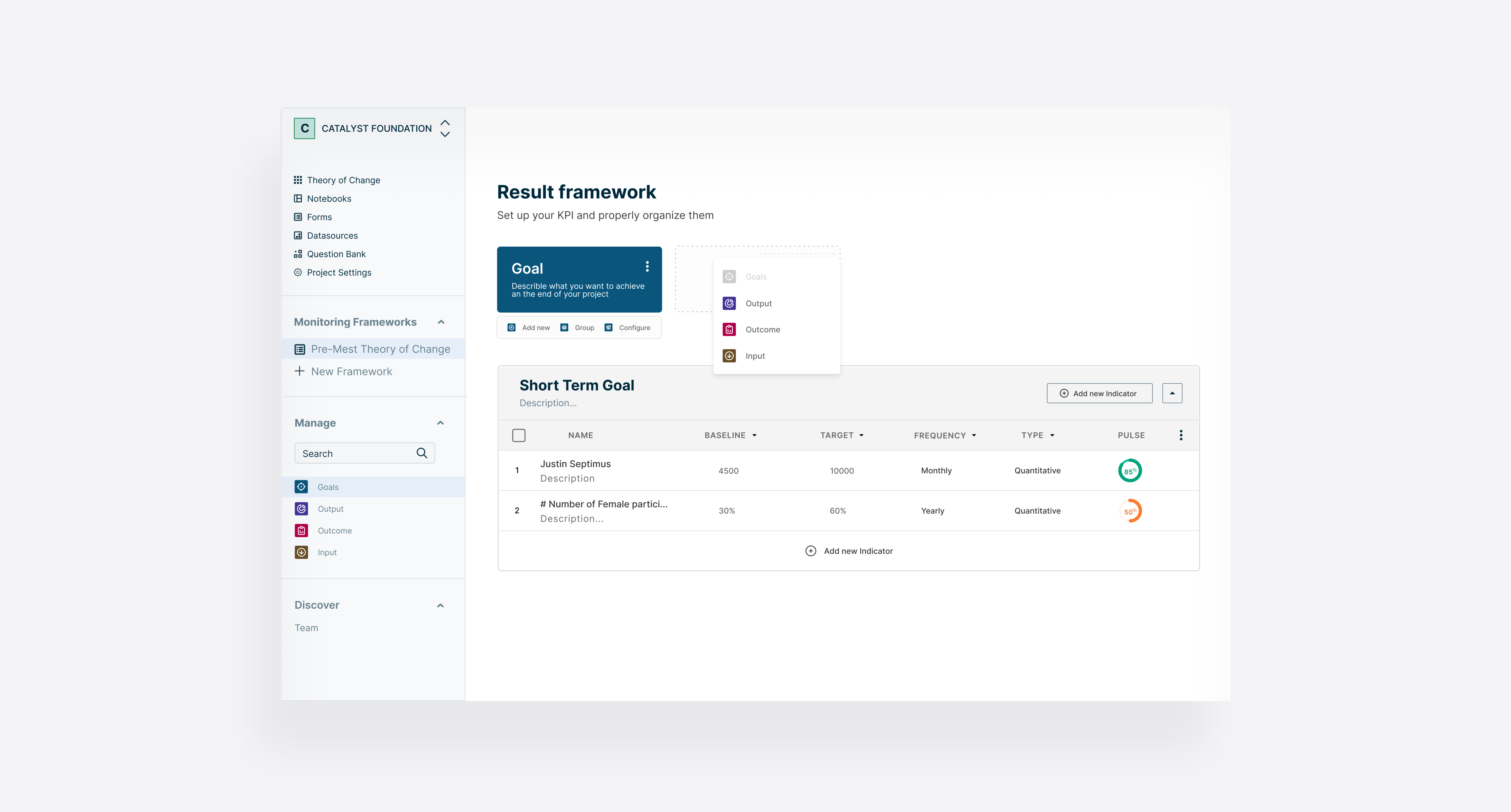 An impact analytics startup providing tools for project tracking, result frameworks, and KPI measurement for organizations.